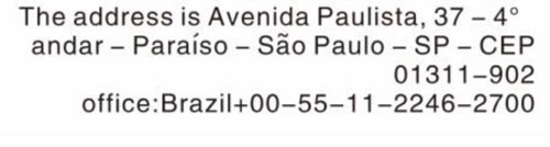 Contact information of headquarters in Brazil: